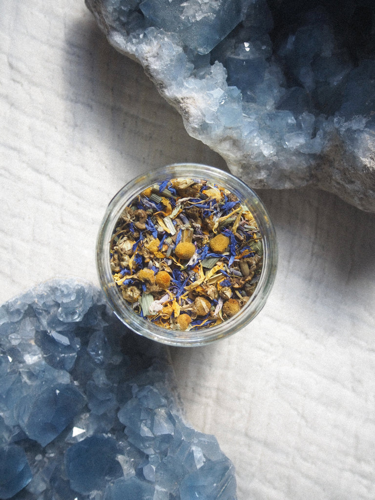 Chamomile crown comes in a beautiful glass jar with the option of a paper refill bag when looking to repurchase. (no BPAs or micro plastics here!)