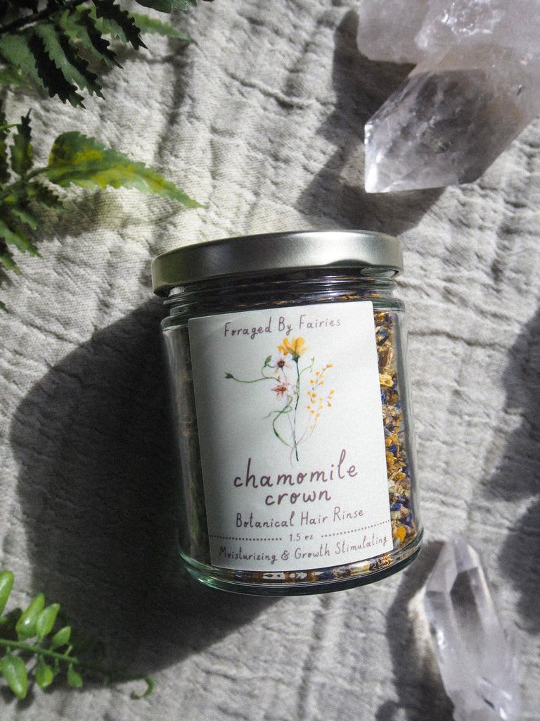 Introducing, Chamomile Crown. A lovely botanical hair rinse that is designed to promote lush locks that radiate health and vitality.