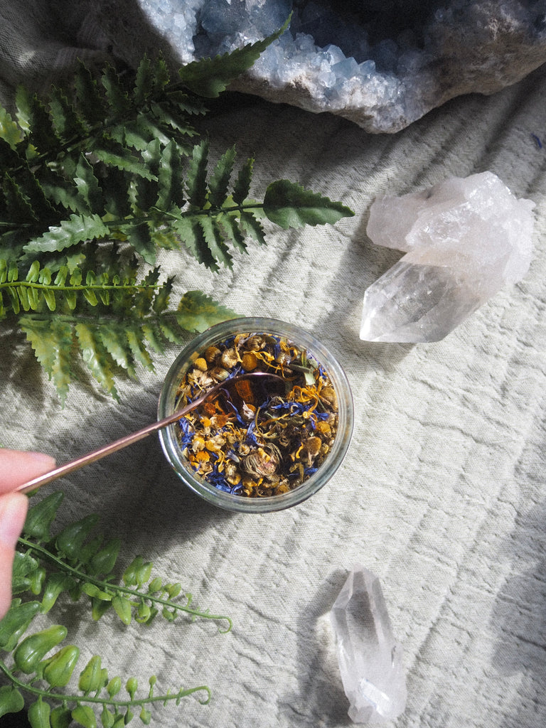 Chamomile, Calendula, Cornflower, Burdock Root, Lavender, Horsetail, Rosemary